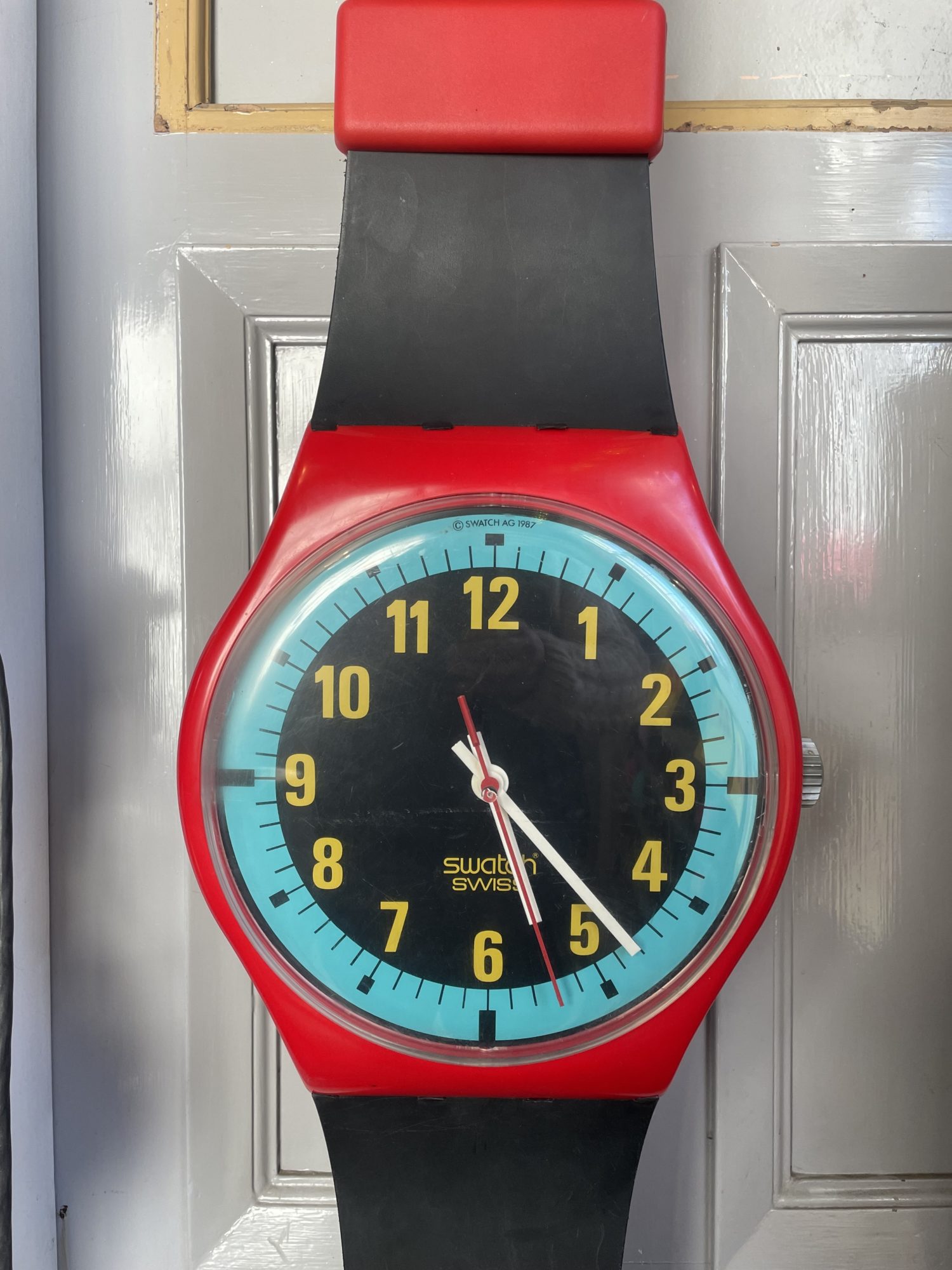 GIANT VINTAGE SWATCH WALL CLOCK WRIST WATCH SHOP DISPLAY QUARTZ 1980s One available £255